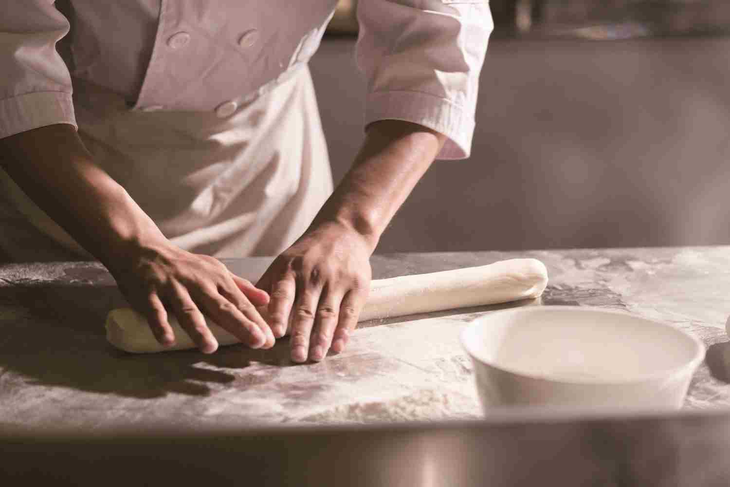 To “knead” means to press and stretch dough with your hands to make it smooth and flat.