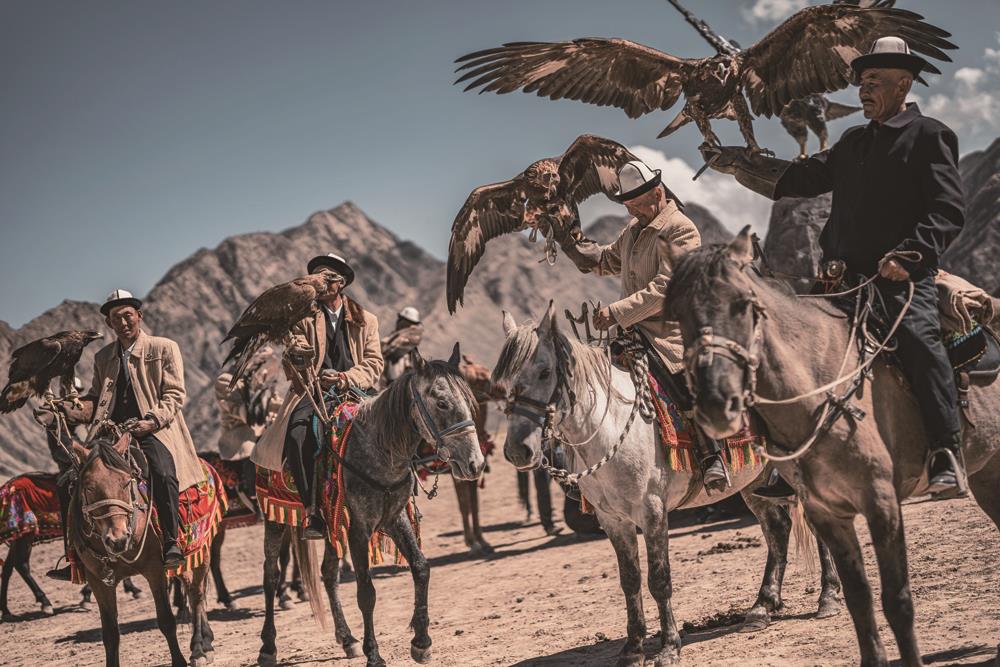 苏木塔什乡坐落在被雪山包围的美丽河谷,阔克萨勒山是雄鹰聚集的地方,这里的柯尔克孜人几千年来传承了从祖先那里流传下来的驯鹰技术,演绎着人与鹰和谐共生的传奇。过去养鹰是为了生存,现在成了一项独特的旅游项目,几十位牧民骑马架鹰呼啸而至的场面令人震撼。我向牧民学习骑马架鹰奔驰,瞬间觉得这才是男人应该有的样子,与骏马雄鹰为伍,驰骋在高山峻岭间。