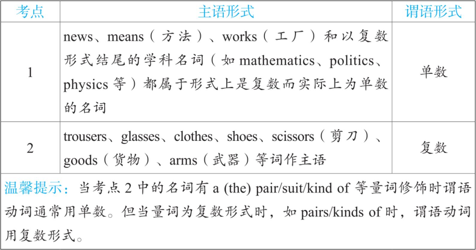 1. 谓语动词要用单数的集体名词:clothing(衣服)、poetry(诗歌)、food(食物)、furniture(家具)、equipment(设备)、scenery(景色)等。它们是不可数名词。