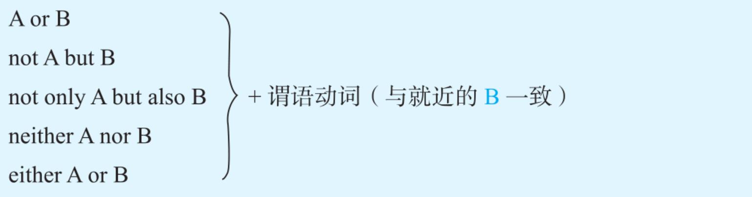 答: 就近一致原则是指谓语的数与最靠近的主语一致。常见的就近一致句型如下:
