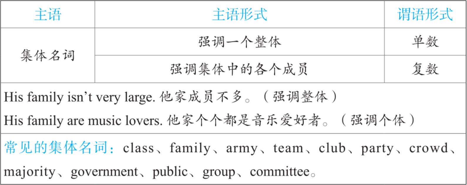 2. 谓语动词要用复数的集体名词:people(人们)、police(警察)、cattle(牛群)等。不能说 a people、a police、a cattle,但可以说a person、a policeman、a head of cattle。