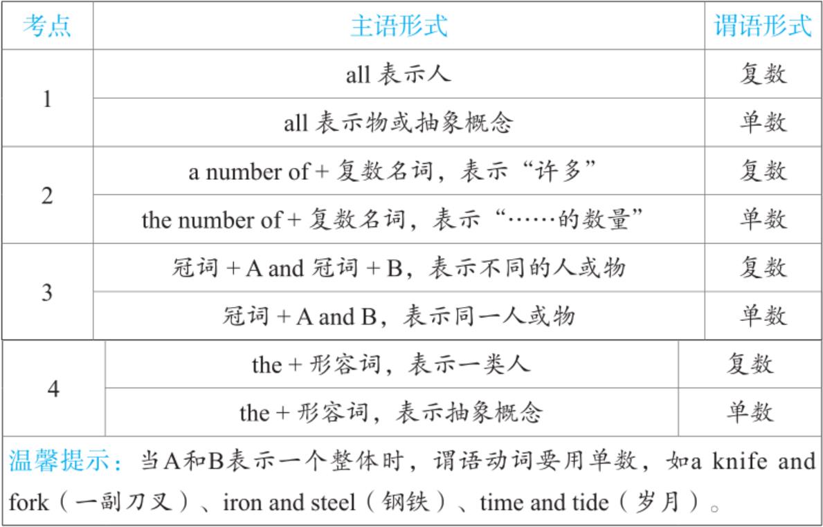 第一步识别考点:由选项中的单复数形式识别该题考点为主谓一致。