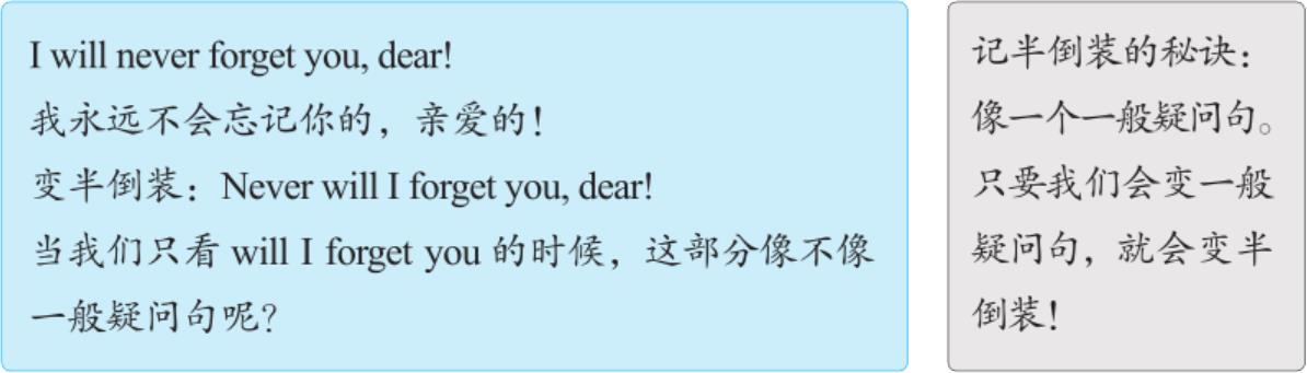 答: 半倒装的样子像一个一般疑问句。(这是笔者自创的记忆诀窍,记起来很简单。)