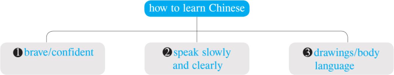 首先,你应当勇敢,不管什么时候遇到困难,都不要放弃。对自己有信心是非常重要的。我们中国人非常友好,所以你不必害怕犯错。其次,你最好慢慢地、清晰地讲中文。用这种方式,别人就能更容易理解你的话。