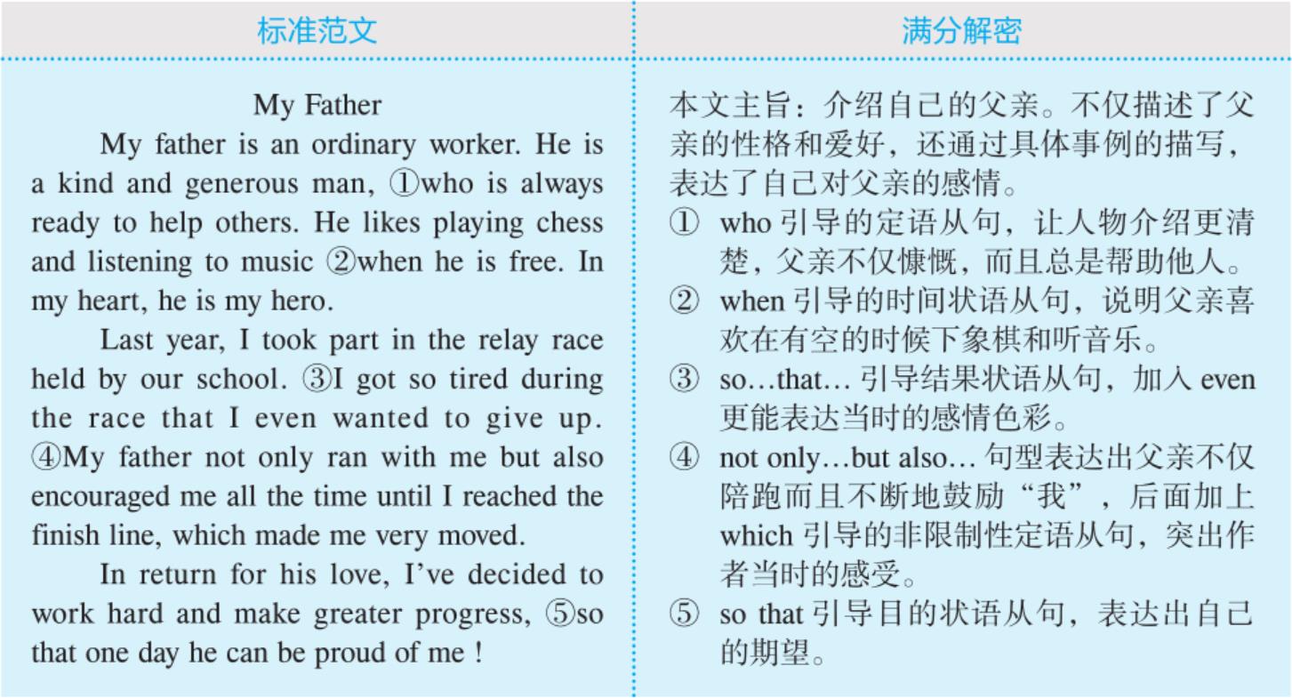 【山东潍坊卷】 6月15 日是父亲节。请你以“My Father”为题,写一篇短文。从性格、爱好等方面简略介绍一下你的父亲,重点写一个曾经发生在你们之间令人感动的故事,并简要说明你将如何回报这如山的父爱。
