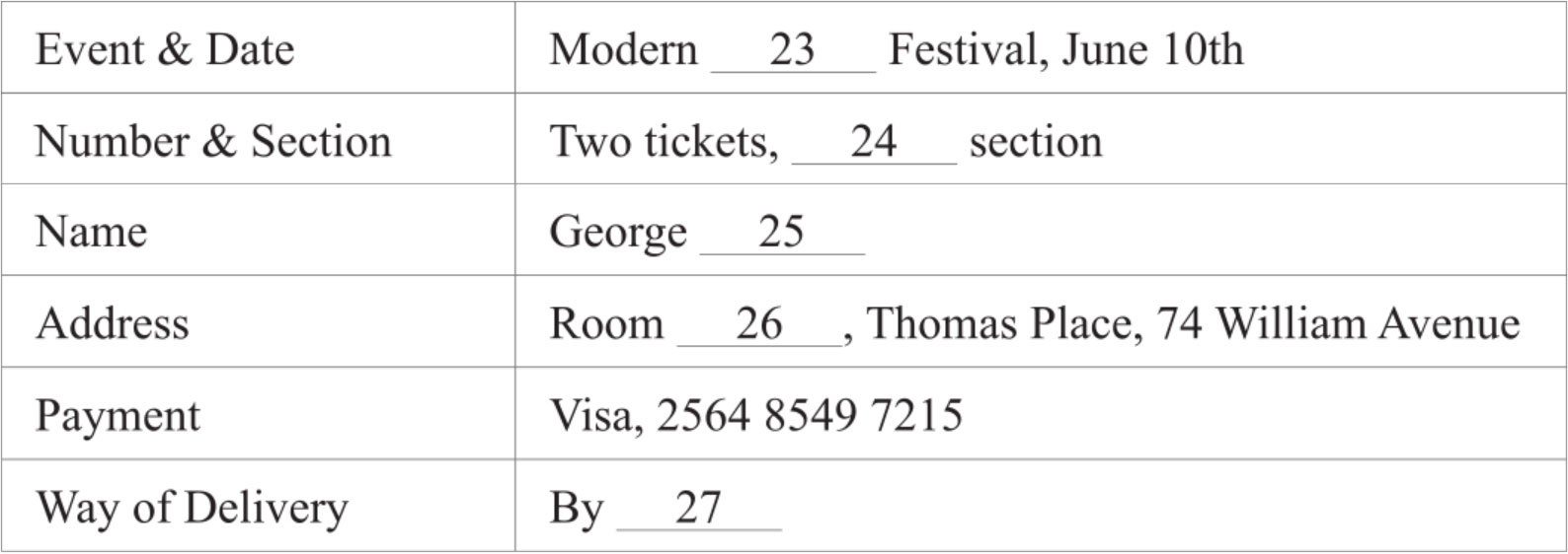 M: Yes, I’d like to buy tickets for the Modern Dance Festival on June 10th.