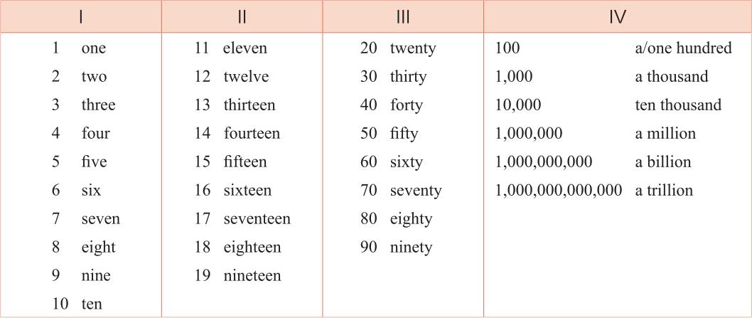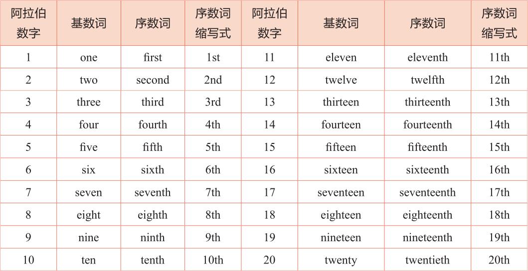 高考中主要考查的基数词可参见下表:
