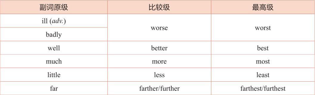 高考中常见的副词比较级和最高级的不规则变化请参见下表: