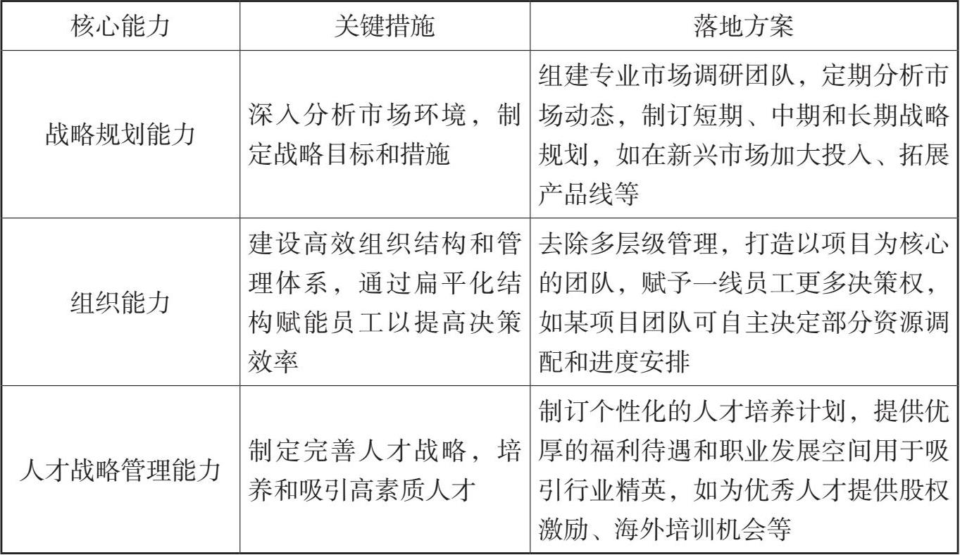 企业持续发展的能力源于其核心竞争力的不断增强。为此,企业需要持续提升自身的核心能力(见表1-4)。