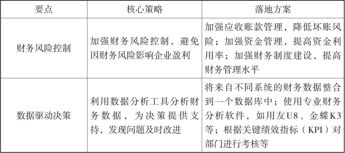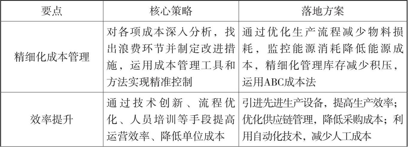 财务健康对企业而言至关重要。降本增效是提升企业财务状况、增强企业盈利能力的核心策略。这不仅是简单的成本压缩,还是一个系统工程,需要从多方面入手(见表1-1)。