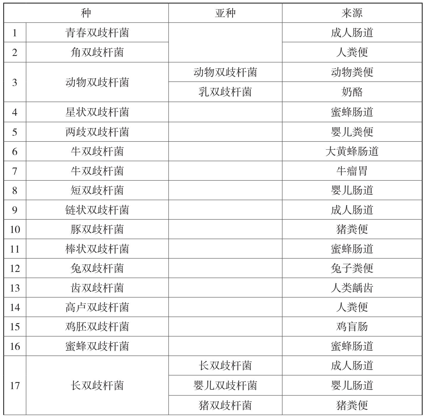 其中,动物双歧杆菌、假长双歧杆菌、热嗜酸性双歧杆菌分别含有 2 个亚种,长双歧杆菌含 3 个亚种。