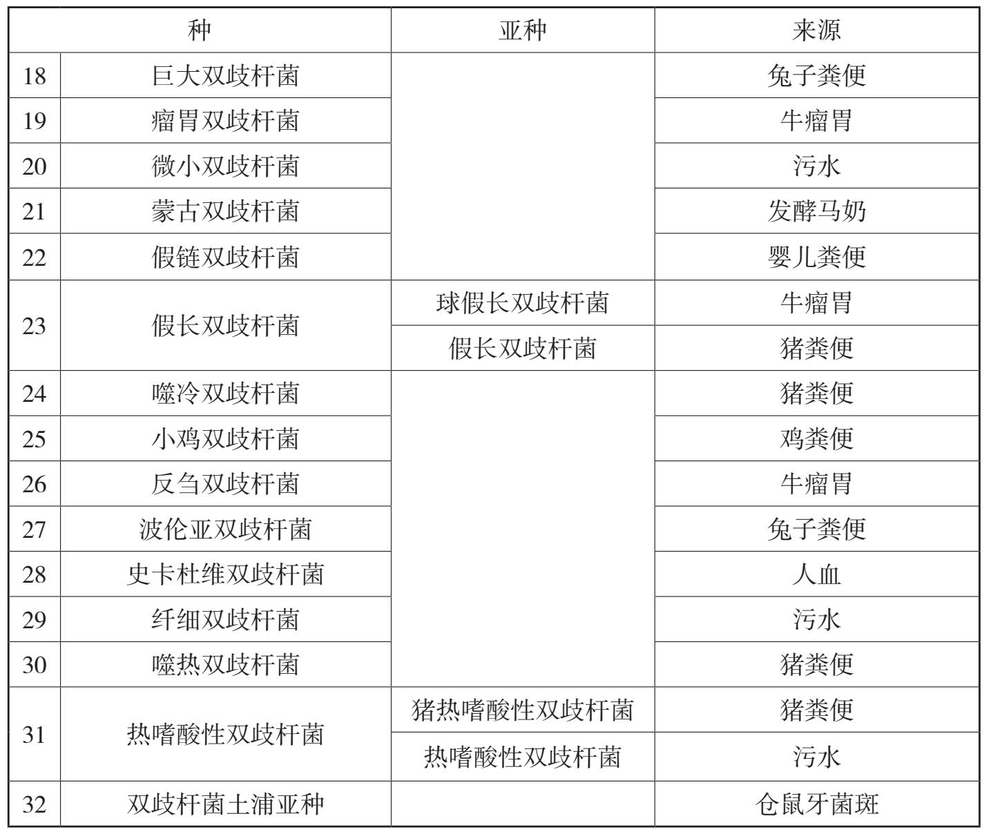 双歧杆菌属共含有 32 个种。如表 1-1 所示。