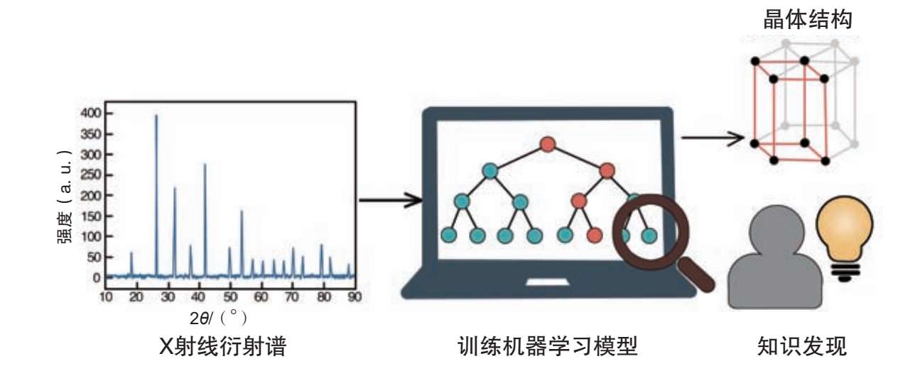 如果将光谱解读与计算机科学中的人脸识别进行对比,我们会发现两者的任务类型非常相似:二者都是根据输入的几个信号特征,精确匹配特定对象。这就意味着,人工智能技术在光谱解读中将大有可为。韩国世宗大学的研究团队通过将X射线衍射(X-ray diffraction,XRD)光谱的分立信号理解为图片形式的连续信号,利用卷积神经网络(convolutional neural network,CNN)从1 785 405组四元化合物的XRD数据中,成功训练出可以识别晶相和组分含量的机器学习模型 [6] ;此外,卷积神经网络还可以实现对晶体晶型的快速识别,准确率超过90% [7] (图1-7)。