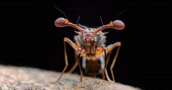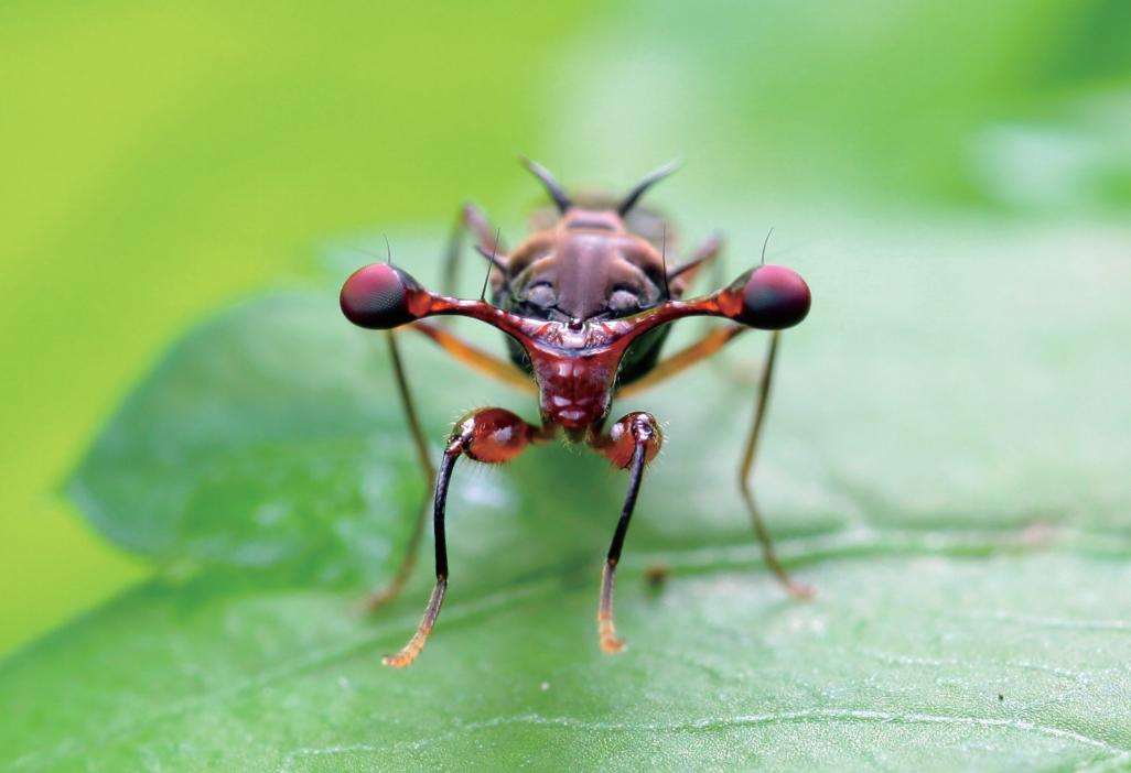 突眼蝇的眼睛不长在头壳上,而长在头上伸出的两根长柄上。这双怪眼,会不会被认为是它们头上的触角呢?