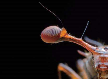 昆虫的眼睛各种各样,有的出奇地大,有的出奇地小;有的是一对单眼,有的是由几万只小眼组成的复眼。不过,不管这些眼睛多么奇,多么怪,绝大多数是长在昆虫头壳表面的。