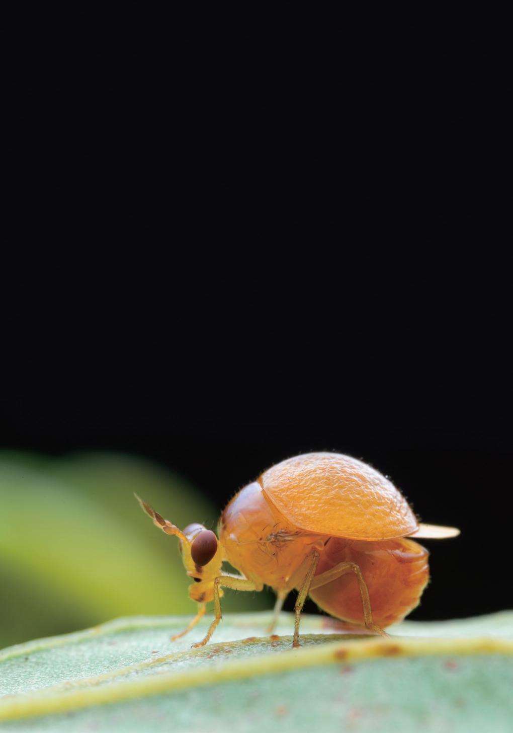黄色的小盾片特别发达,翅膀收藏于小盾片下方