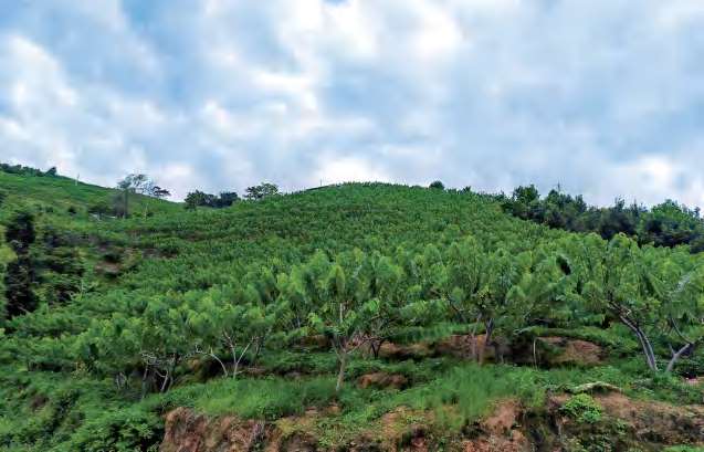 云南番荔枝产业发展日趋迅猛。云南玉溪元江从2019年开始较大规模种植,目前全县种植面积550公顷,带动红河流域发展约1500公顷,包括玉溪新平、红河元阳等,从零星栽培转入商业化和规模化种植(图1-8)。主要种植普通番荔枝及凤梨种番荔枝,元江干热河谷区域普通番荔枝上市时间为8—11月,凤梨种番荔枝种植利用高喷增湿降温,配合人工授粉和产期调节技术,果期为12月至翌年3月。