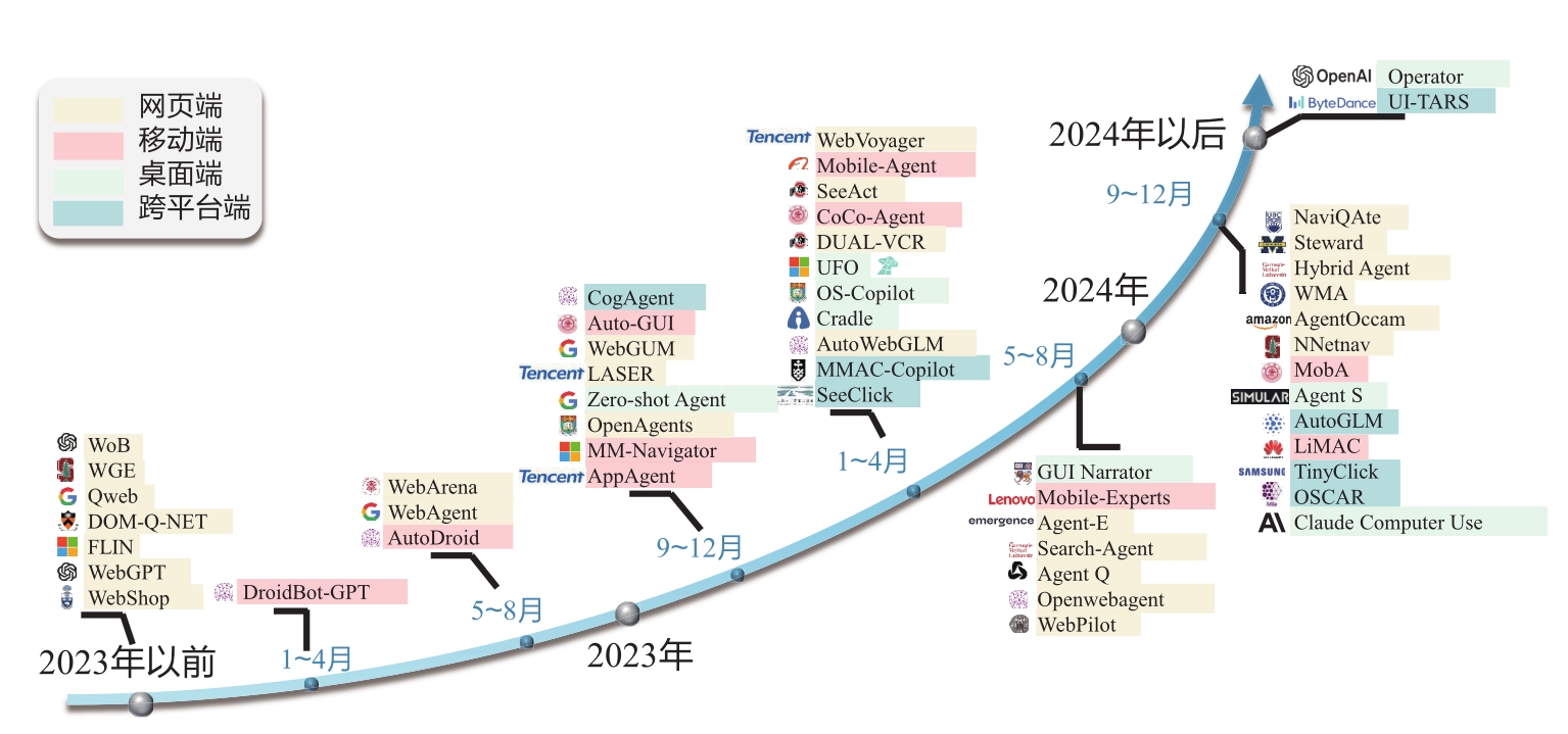 图1-3 近年来大语言模型驱动的GUI智能体演进概览