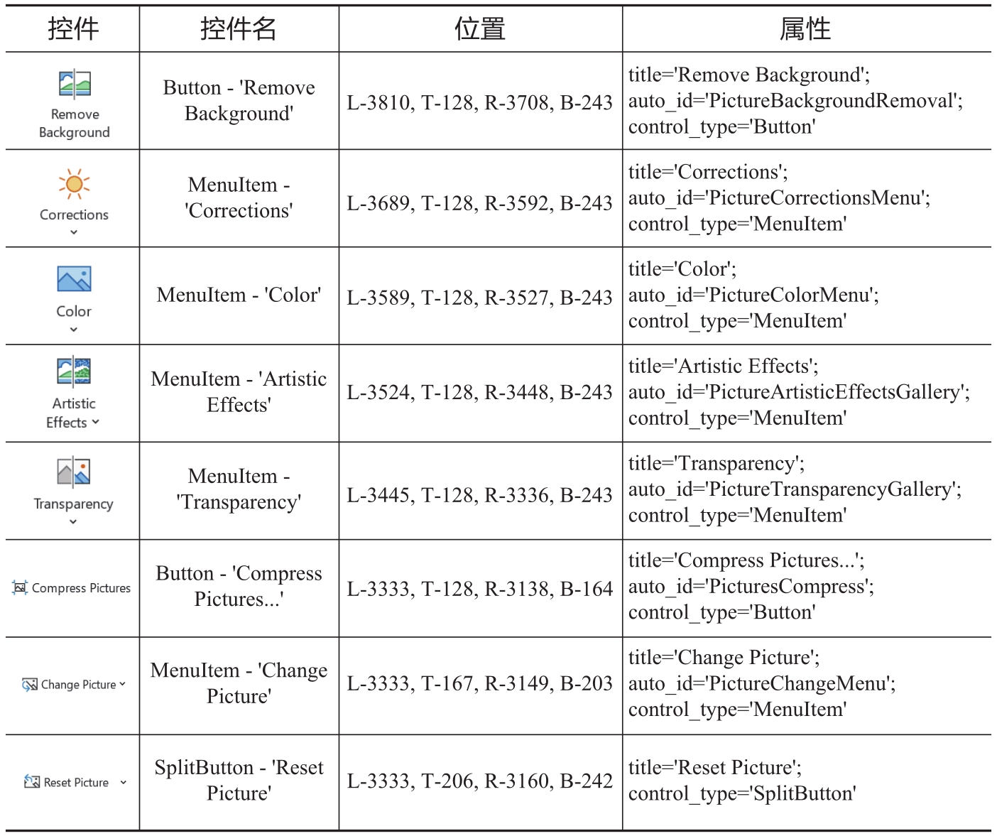 表4-2 PowerPoint应用中用于GUI智能体交互的控件元素属性示例