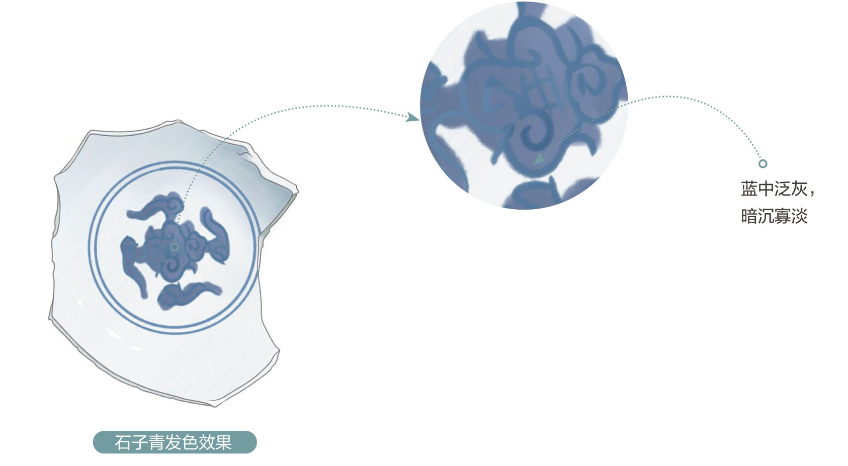 石子青又称“无名子”“画烧青”,是一种国产青料,产自江西,用于青花瓷器的绘制。景德镇青花瓷器在使用回青之前,石子青是主要的青料,于明代中期开始使用,多见民窑青花器。在单独使用时,青花发色蓝中泛灰,暗沉寡淡,因此常与回青料配合使用,以呈现最佳的颜色效果。