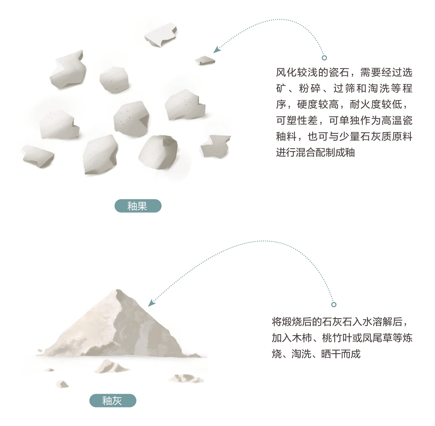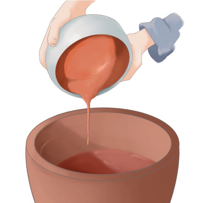 釉浆也称“釉水”,是瓷器的釉料,用于施于瓷坯表面。釉浆由釉果和釉灰调和而成,因浆状更便于给器物施釉而产生。制作釉浆有一定的比例讲究,若釉灰占比少,釉面在烧成后会出现水波纹等釉病;若釉灰占比多,釉面在烧成后容易犯灰或犯青。
