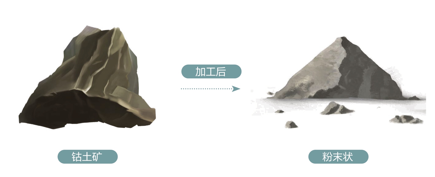 钴土矿是指蕴藏在地层中、含钴量较大的矿,含钴量最高可达30%以上,还包含铁、二氧化锰、镍(niè)、铜、氧化铝、二氧化硅、氧化钙等化学成分。主要分布于云南、江西、福建及浙江等省,是炼制青花料的原矿。钴土矿着色力很强,在入窑烧制后呈现出蓝色,因此还可以用来制作蓝釉、蓝彩等色釉原料。
