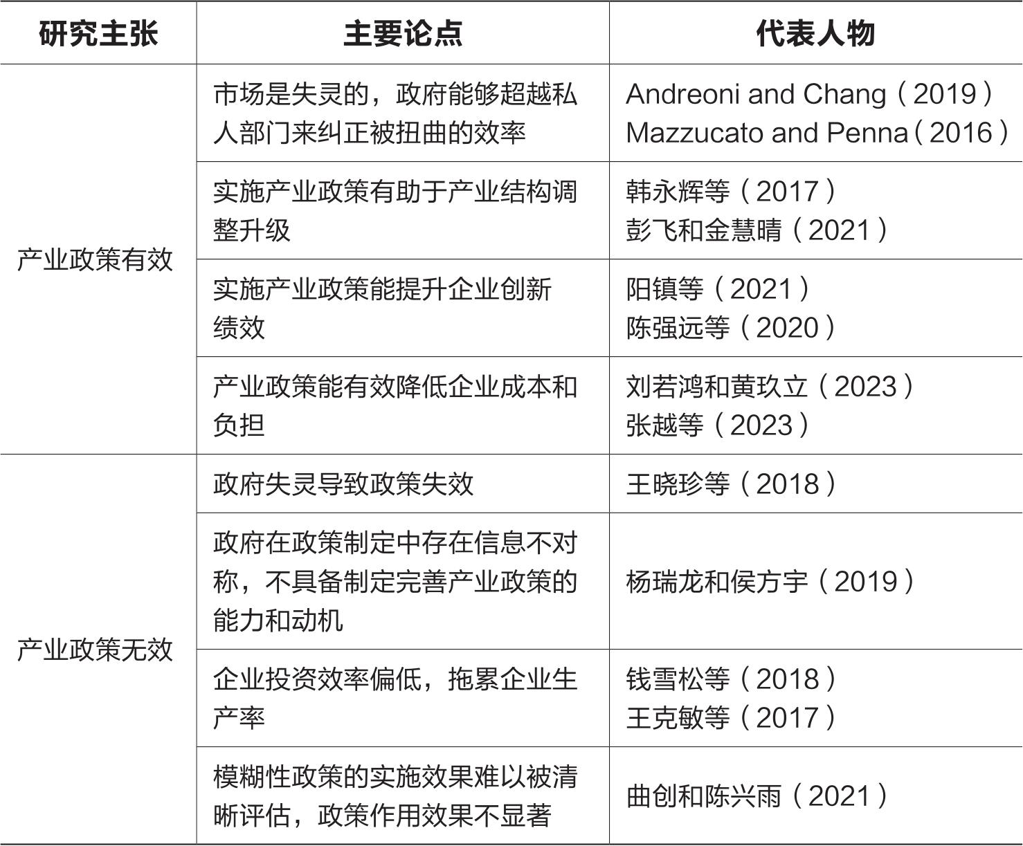 表2-1 关于产业政策有效性的研究