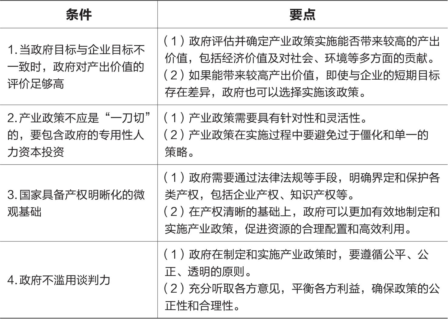 表2-2 产业政策有效性“四条件”
