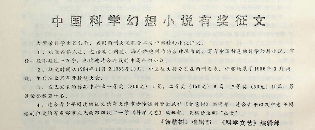 刊登在《科学文艺》1985年1期上由《智慧树》和《科学文艺》共同发起的征文启示
