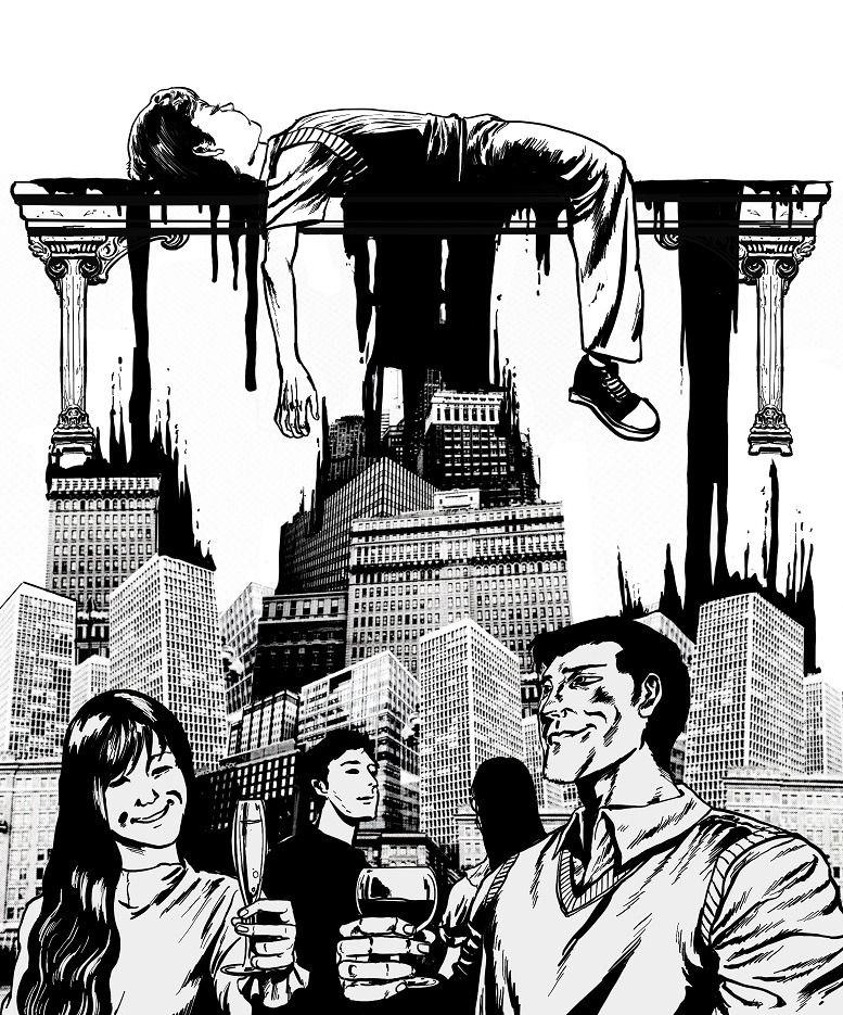 于是,他们(指身居“豪宅”的权贵)又把第三个孩子关进了地窖。这些人心里也觉得别扭,但又舍不得自己的豪宅,而且他们也是真心实意为了欧梅拉斯以及全城民众的福祉着想——只是牺牲了地窖里那个孩子的幸福。新闻播报员谈及第二个孩子的死,语调哀伤;社交媒体上的用户(欧梅拉斯的居民都能适度使用社交媒体、循规蹈矩,不会过度成瘾、胡作非为)也纷纷表示这是一场彻头彻尾的悲剧。虽然以前大家也心知肚明地窖里关着孩子,可现在已经是第三个了;更何况以往地窖里的孩子要么寿终正寝,要么死于营养不良,一般来说不会死于谋杀——这样一想就更让人伤感了。