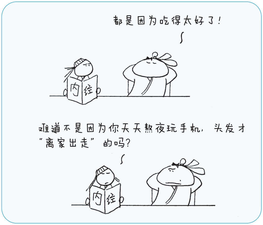 父母很着急,到处求医问药,医生一看脱发,往往开的都是何首乌、黄精、当归、黑芝麻等滋补的膏方。结果越吃头发掉得越多,最后连发根都腐烂了。