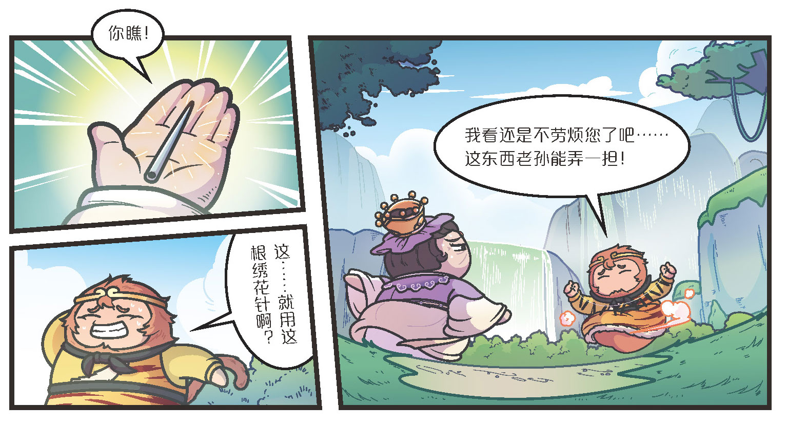 毗蓝婆菩萨见行者急了,便笑着说出这绣花针的来历,这绣花针非钢、非铁、非金,乃是从她儿子的眼中炼出来的。