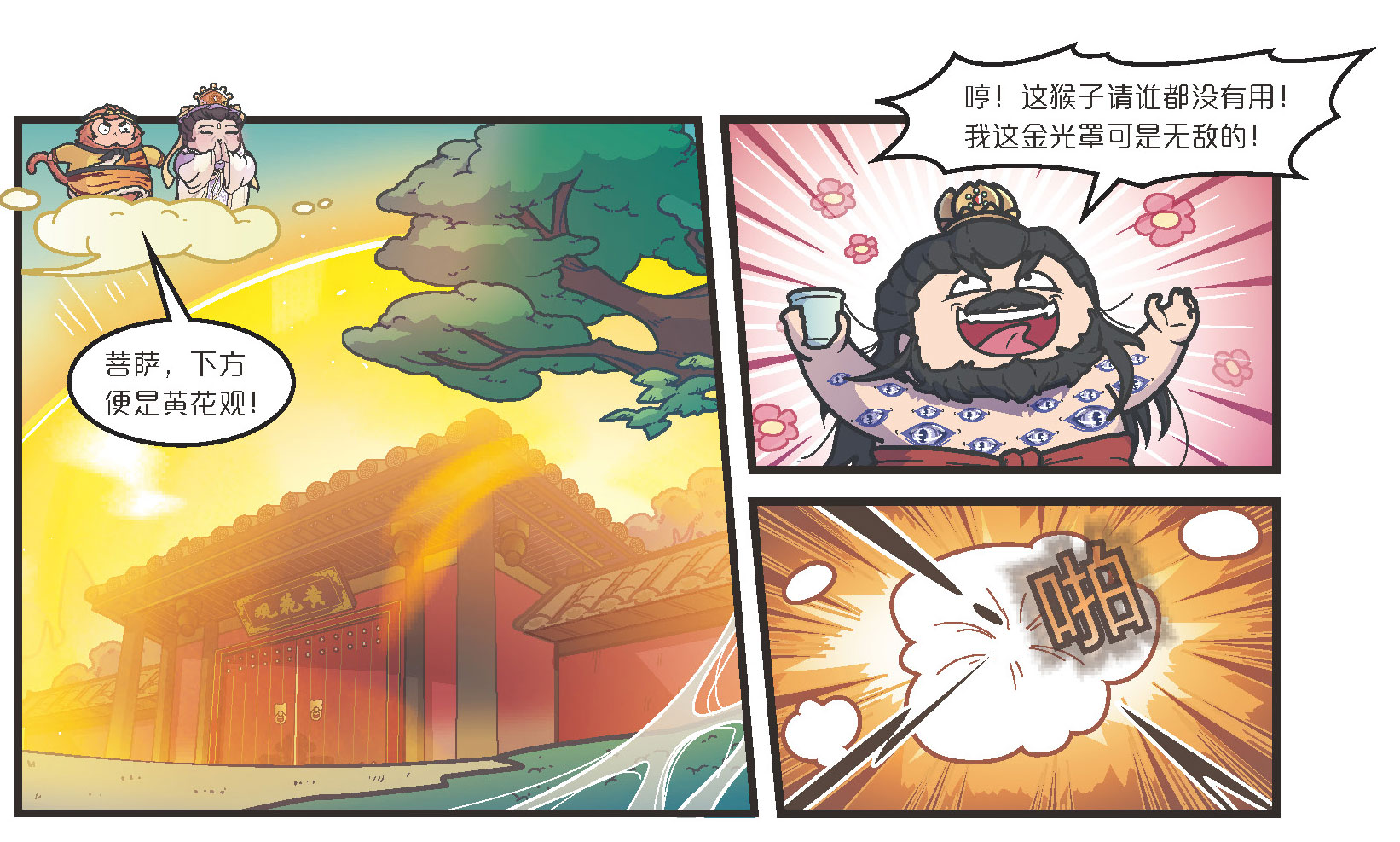 行者听后惊骇不已,连忙给菩萨赔礼道歉,接着就带菩萨来到黄花观所在之处。那黄花观方圆十里都金光艳艳,菩萨取出绣花针,拈在手中,朝空中抛去,刹那间就破了金光。