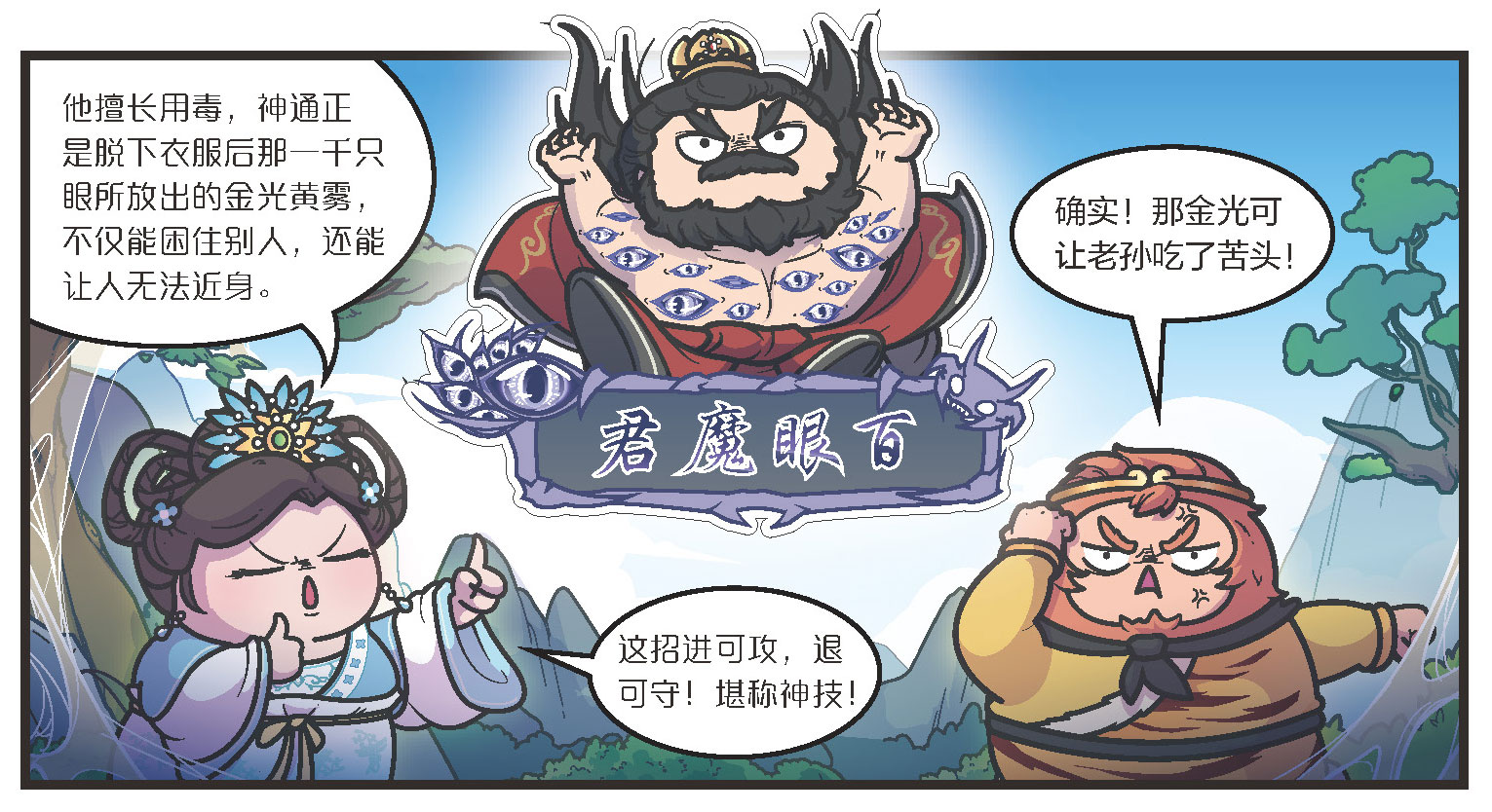 行者将自己的来历,以及事情的经过说给了妇人听,妇人得知行者的师父是为那道士所捉后,就对行者说出了那道士的来历。那道士名为百眼魔君,又叫多目怪。