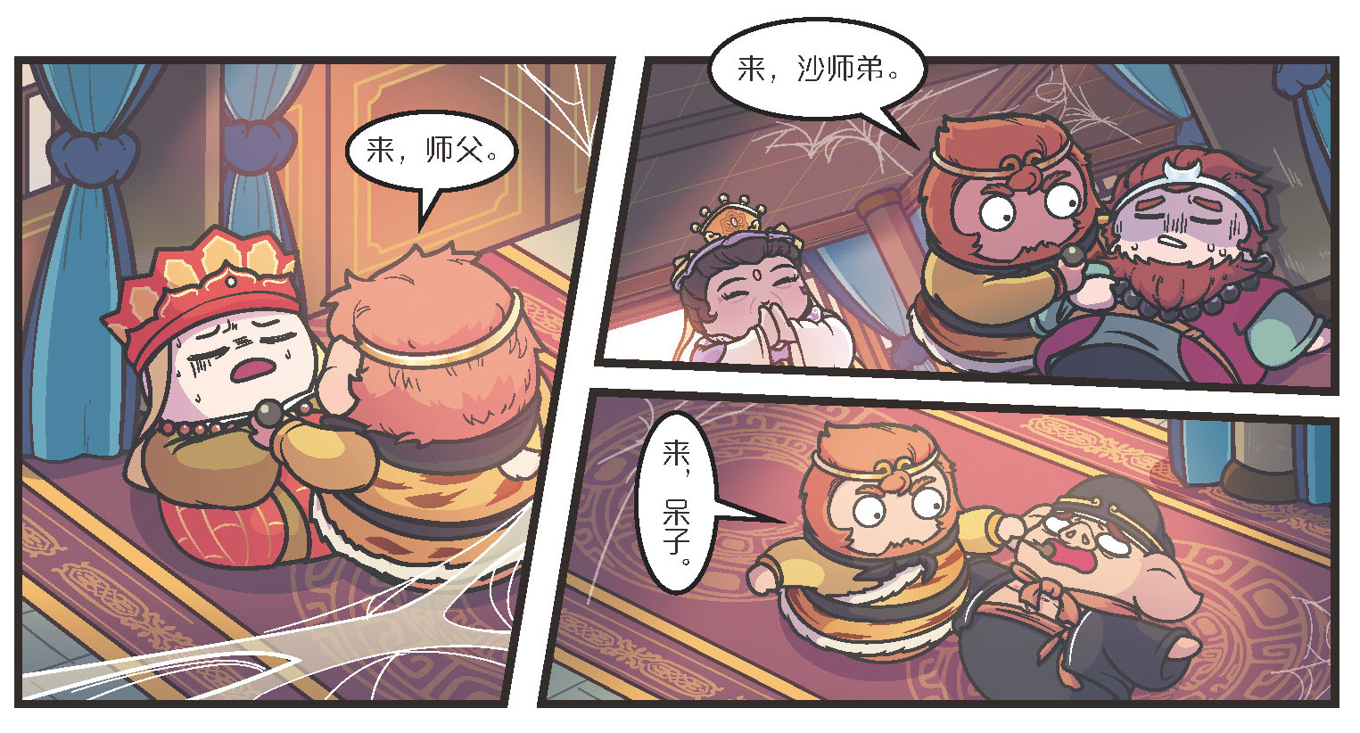 菩萨从袖中取出一个破纸包,从里面取出三粒红药丸递给行者,行者将药丸分别喂给三人。
