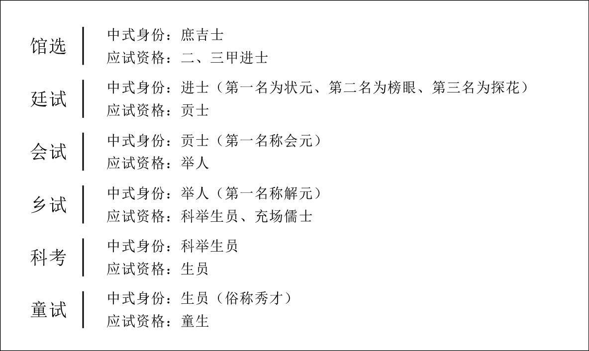 明代科举考试体系,据《明史·选举志二》及郭培贵《关于明代科举研究中几个流行观点的商榷》补充制图