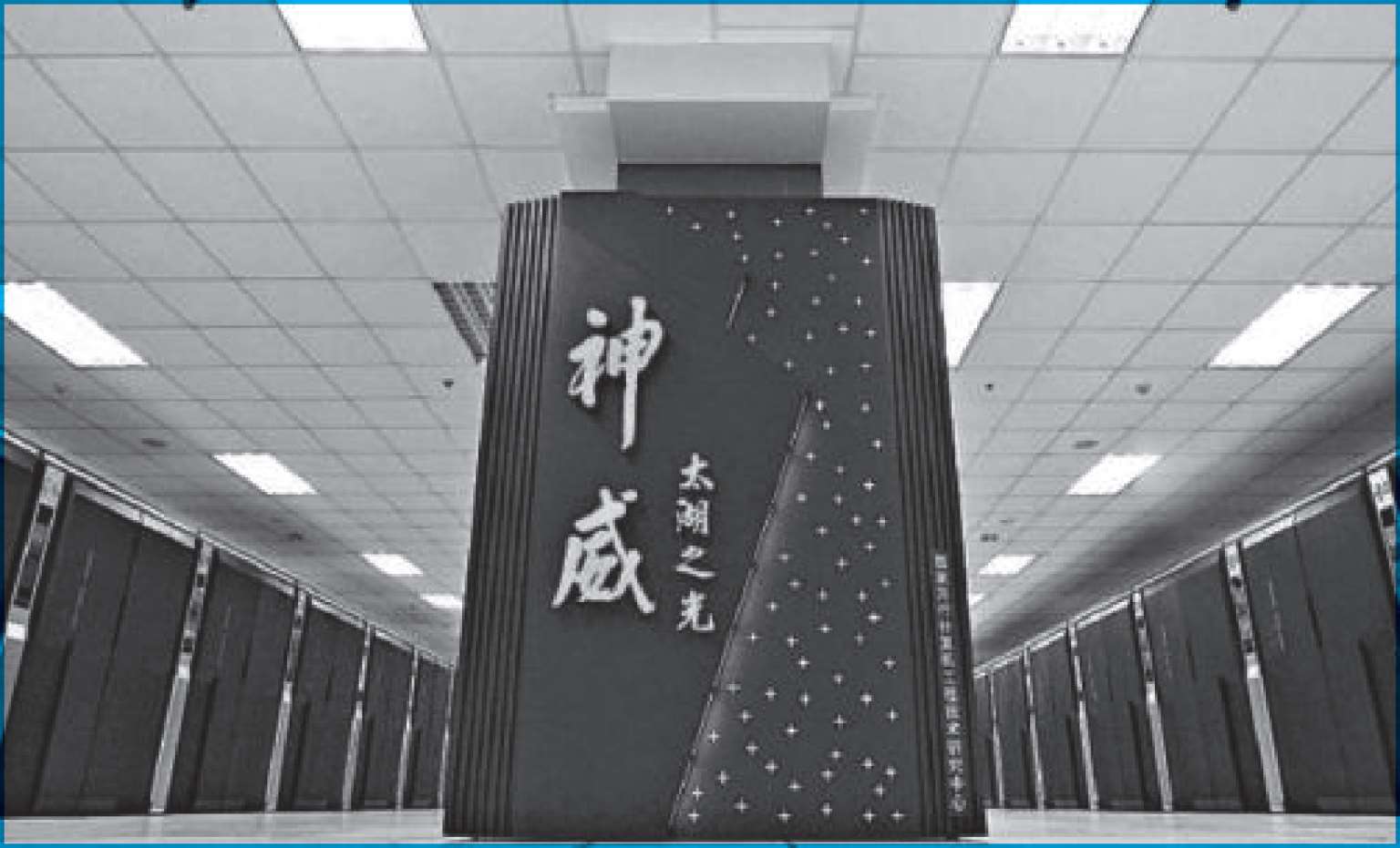 2016 年 6 月,我国研制成功“神威·太湖之光”超级计算机,采用申威SW26010 众核处理器,64 位架构,其速度比“天河二号”快近两倍,性能提升了三倍,但总功耗反而更低。2017 年 11 月,世界超级计算机 500强榜单中,中国的“神威·太湖之光”(见图 1-8)以每秒 9.3 亿亿次的浮点运算速度第四次夺冠。