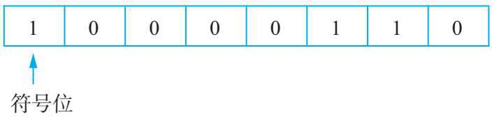 一个数在机器内的表示形式称为“机器数”。机器数是有符号的,通常把这个符号放在二进制数的最高位。计算机内部只有“0”和“1”两种形式,因此在最高位用“0”表示正,“1”表示负,称为“数符”,其余位表示数值。例如,十进制负数-6,其二进制数为-110,在计算机中表示为 10000110,如图 2-1 所示。