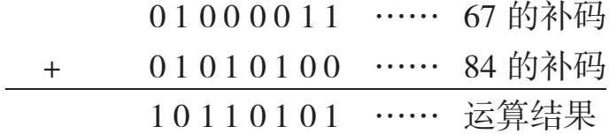 其高位为 1,即为负数,因此高位“1”保持不变,其余位按位取反后为 0001010,然后加 1,结果为 10001011。