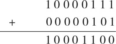 例如,(-7)+5 的结果应该为-2,但在计算机中,若不考虑符号问题,符号位与数值同时参与运算,则结果为-12,运算过程如下: