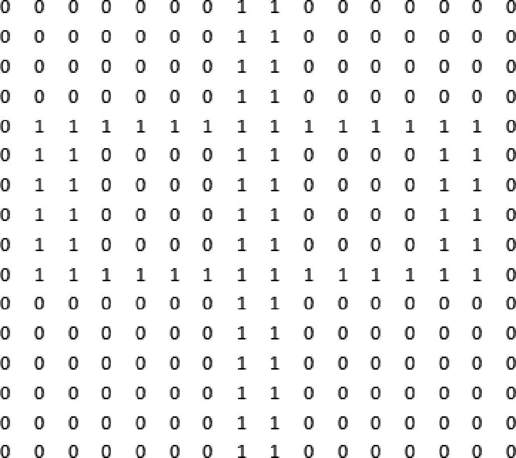 图 2-4 “中”字的 16×16 点阵字形示意图