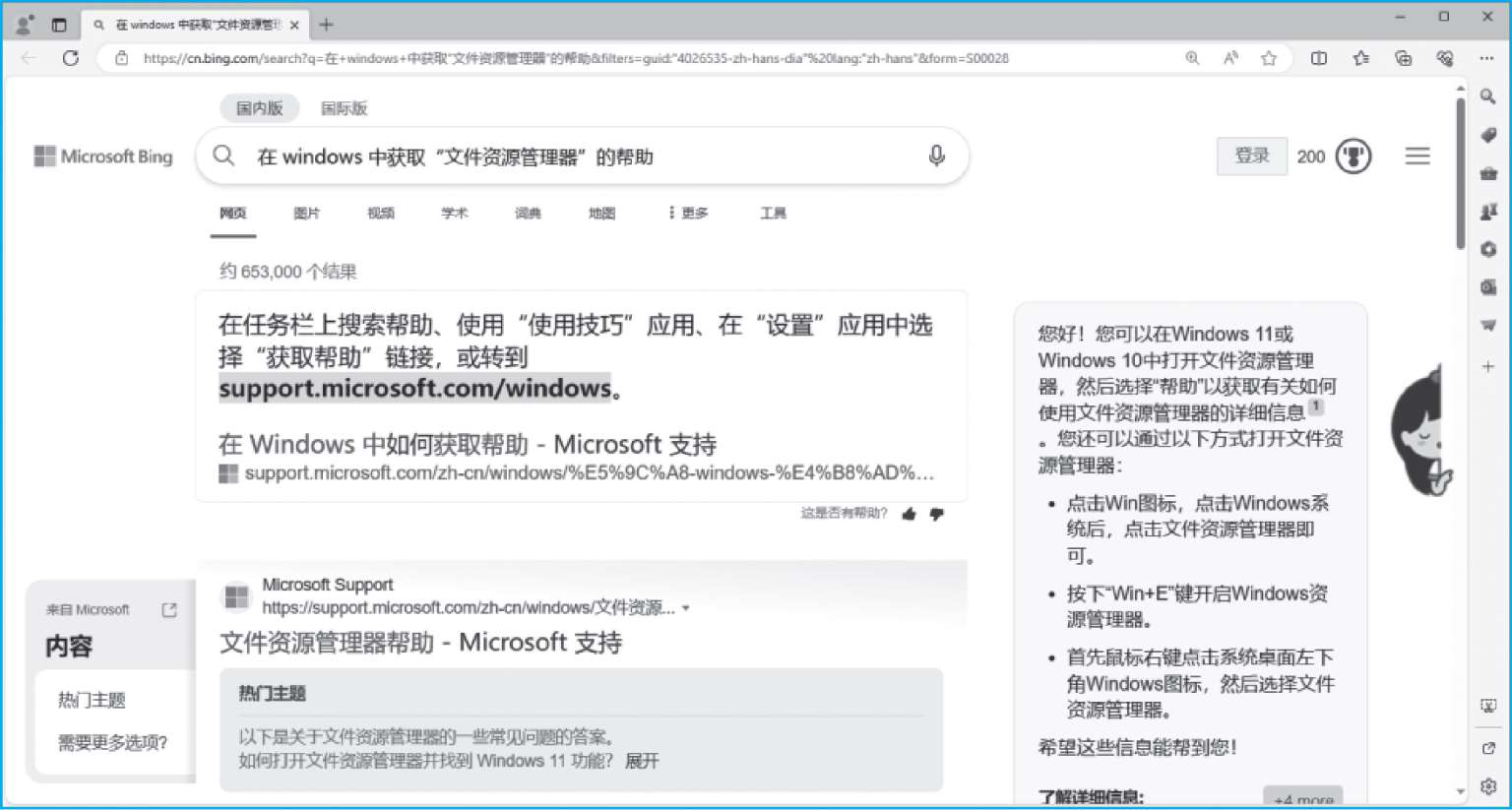 (如画图窗口),或者直接按【 F1】键(如记事本窗口),在用户的默认浏览器中执行Bing搜索以获取Windows 10 的帮助信息,如图 4-15 所示。在应用程序中直接按下【 F1】键通常会打开该程序的帮助(如WPS窗口)。