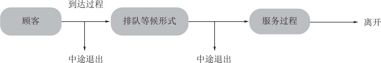 根据排队理论,服务过程可用排队系统进行描述。因服务内容不同呈现多种服务过程形式,但一般规律如图3.2所示。