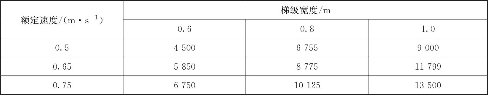 各梯级宽度和额定速度对应的自动扶梯理论通过能力见表3.4。