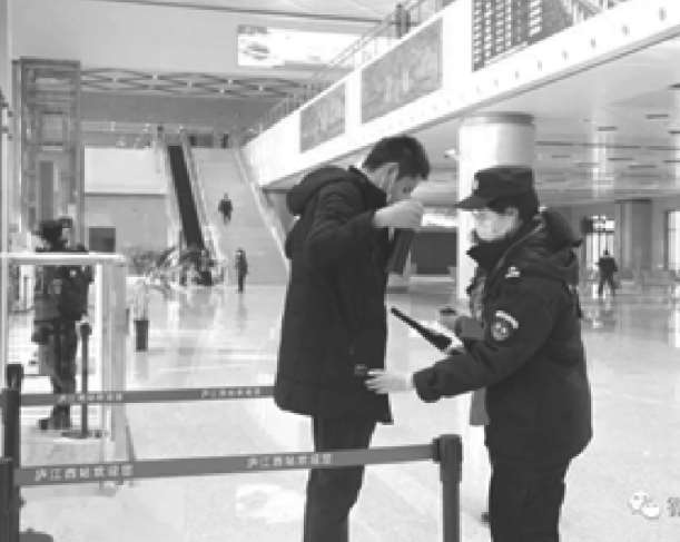 (1)进站旅客到达安检区域,选择一个安检通道排队等候。