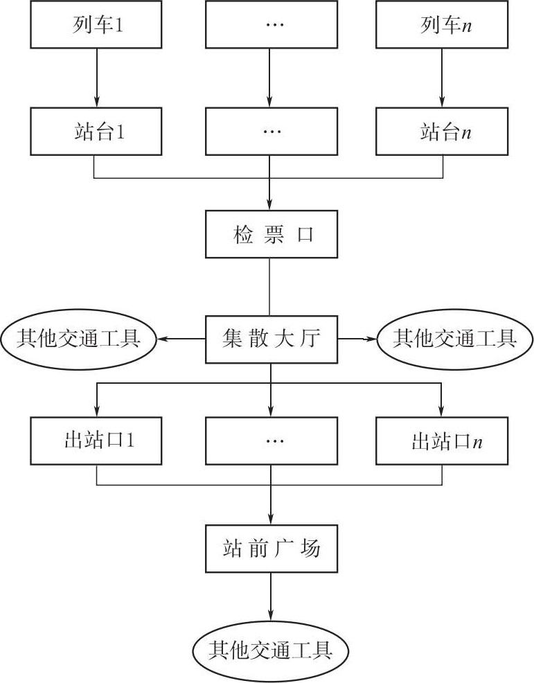 高速铁路车站提供了进站和出站两方面的客运服务,其服务设备的配置原则是保障客流组织及服务的生产过程顺畅、服务质量达标。高速铁路车站旅客进站流程、出站流程,如图3.3、图3.4所示。