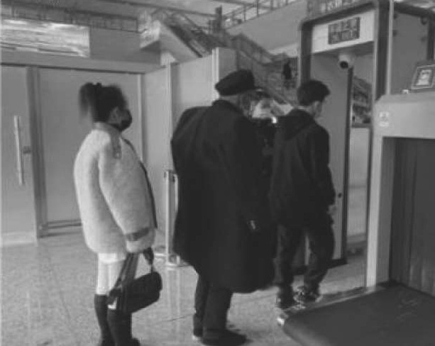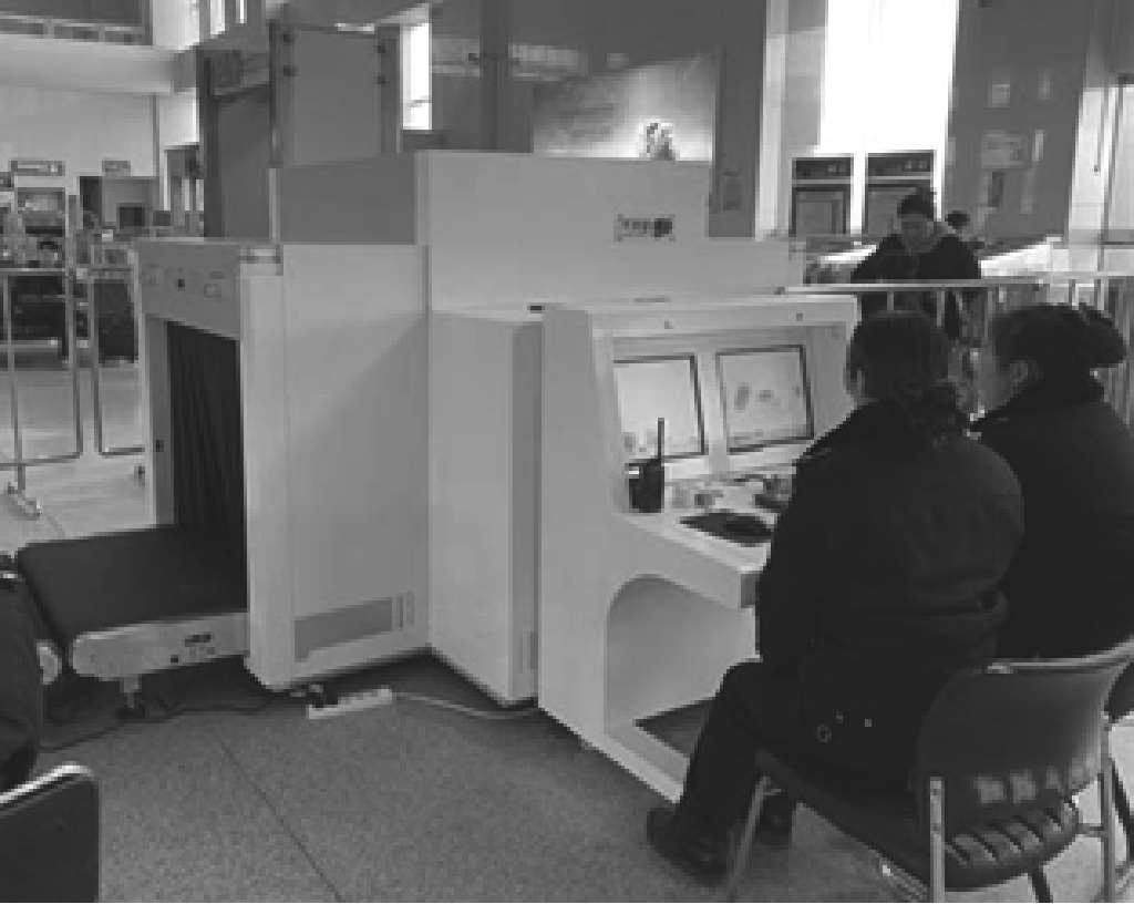 安检是确保旅客运输安全的重要防线。高速铁路客运车站的安全检查主要包括人检和物检。其中,人检主要是针对旅客进行安全检查,既要维护旅客的个人隐私,也要保护广大群众的生命安全,如图3.7所示。物检主要是针对旅客随行物品进行检查,妥善处置禁止携带物品和限制携带物品,如图3.8所示。人员安检设备主要包括金属安检门和手持安检仪。物品安检设备主要是安检机、液体探测仪、爆炸物探测仪。