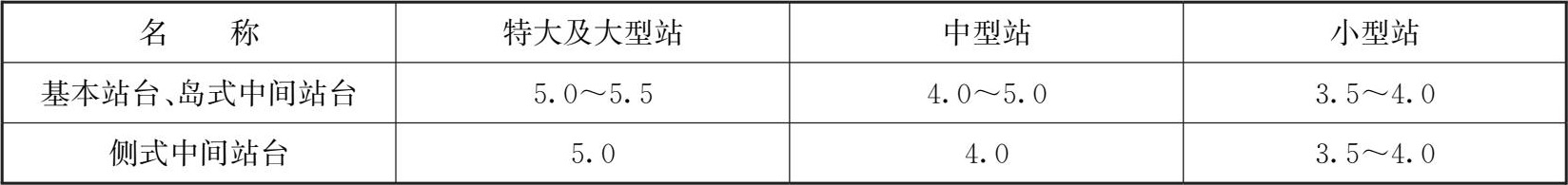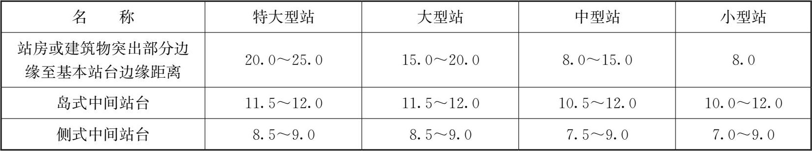 注:站房建筑物范围以外地段的基本站台宽度不应小于侧式中间站台标准。