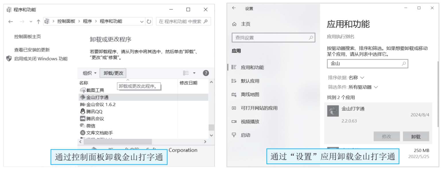 图1-24所示的是卸载“金山打字通”指法练习软件的操作。