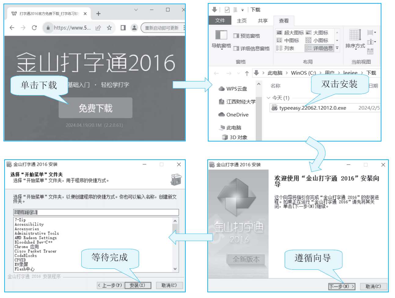 图1-23所示的是下载并安装“金山打字通”指法练习软件的过程。